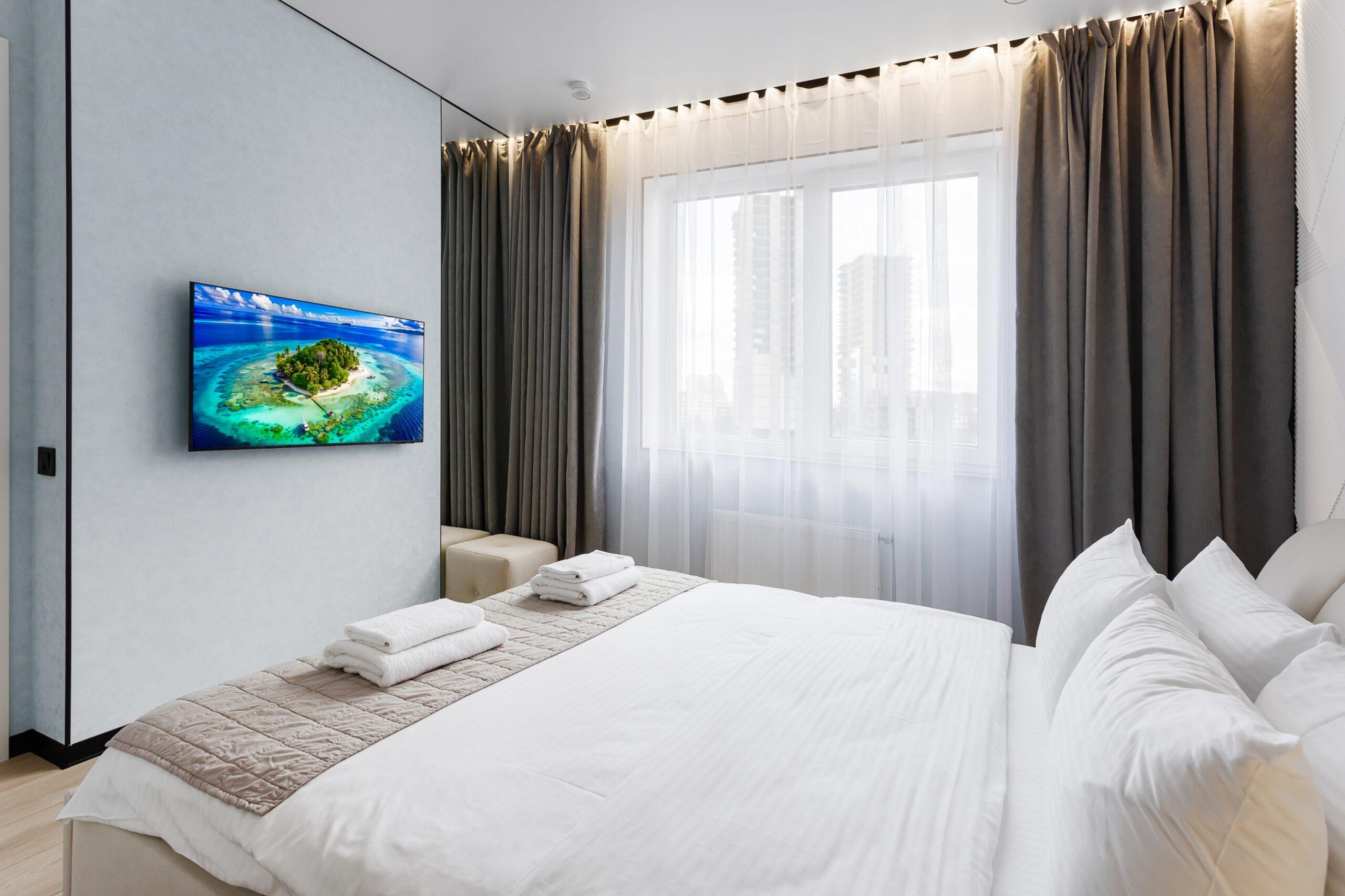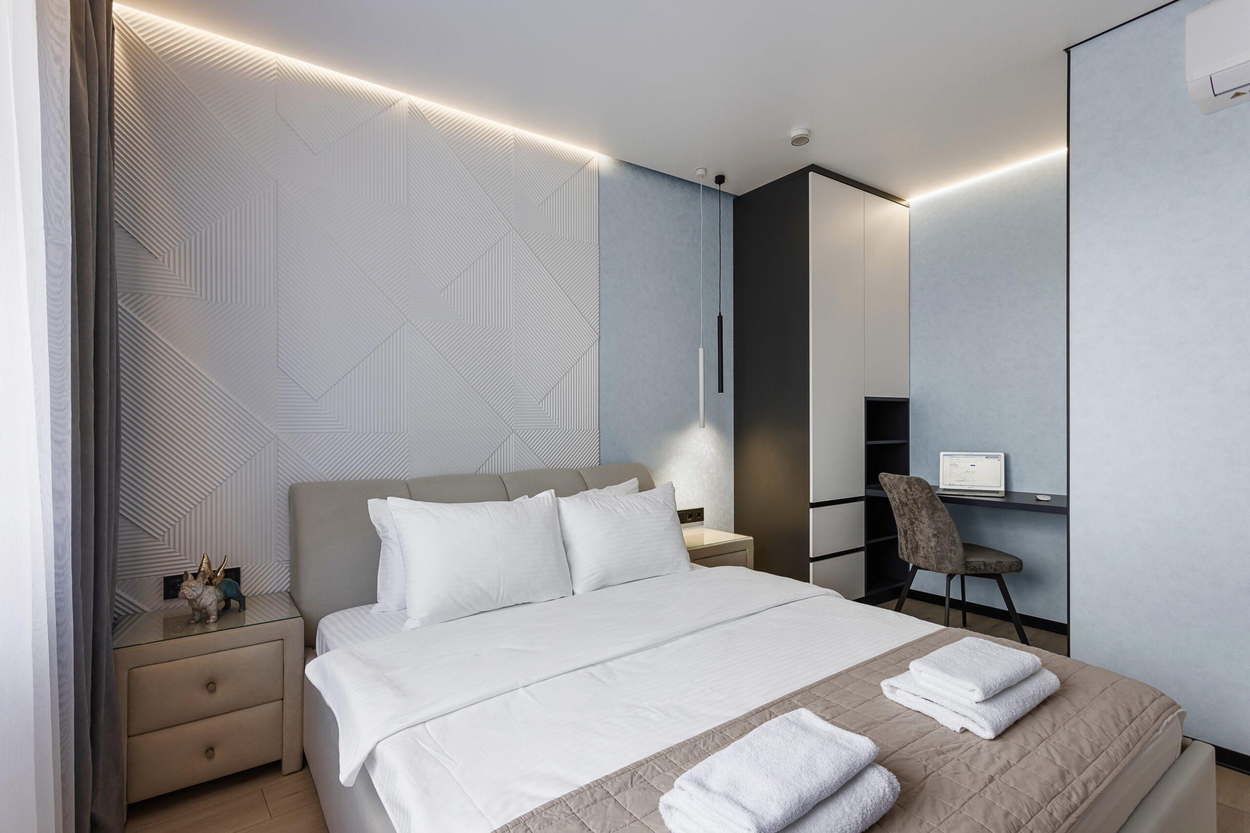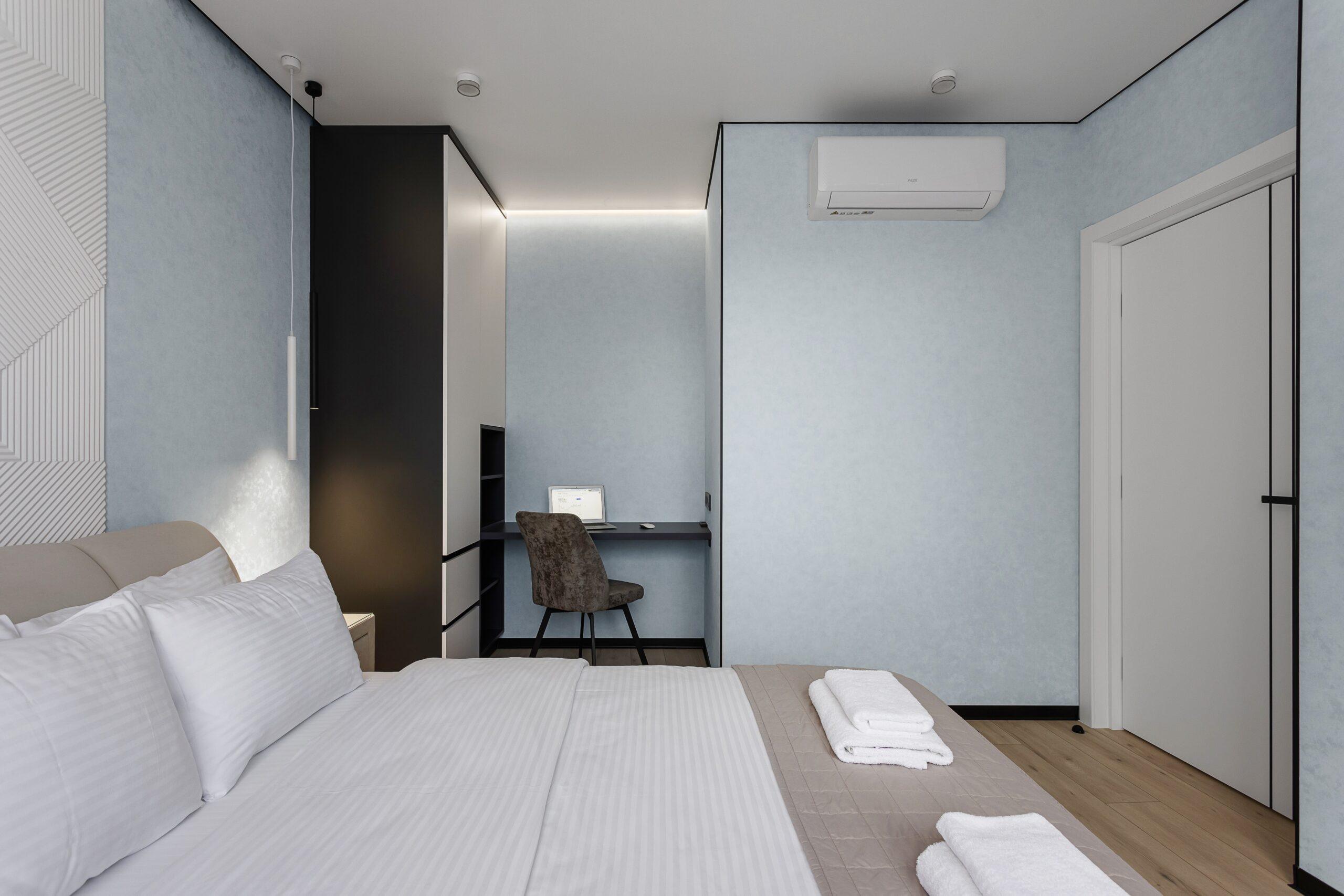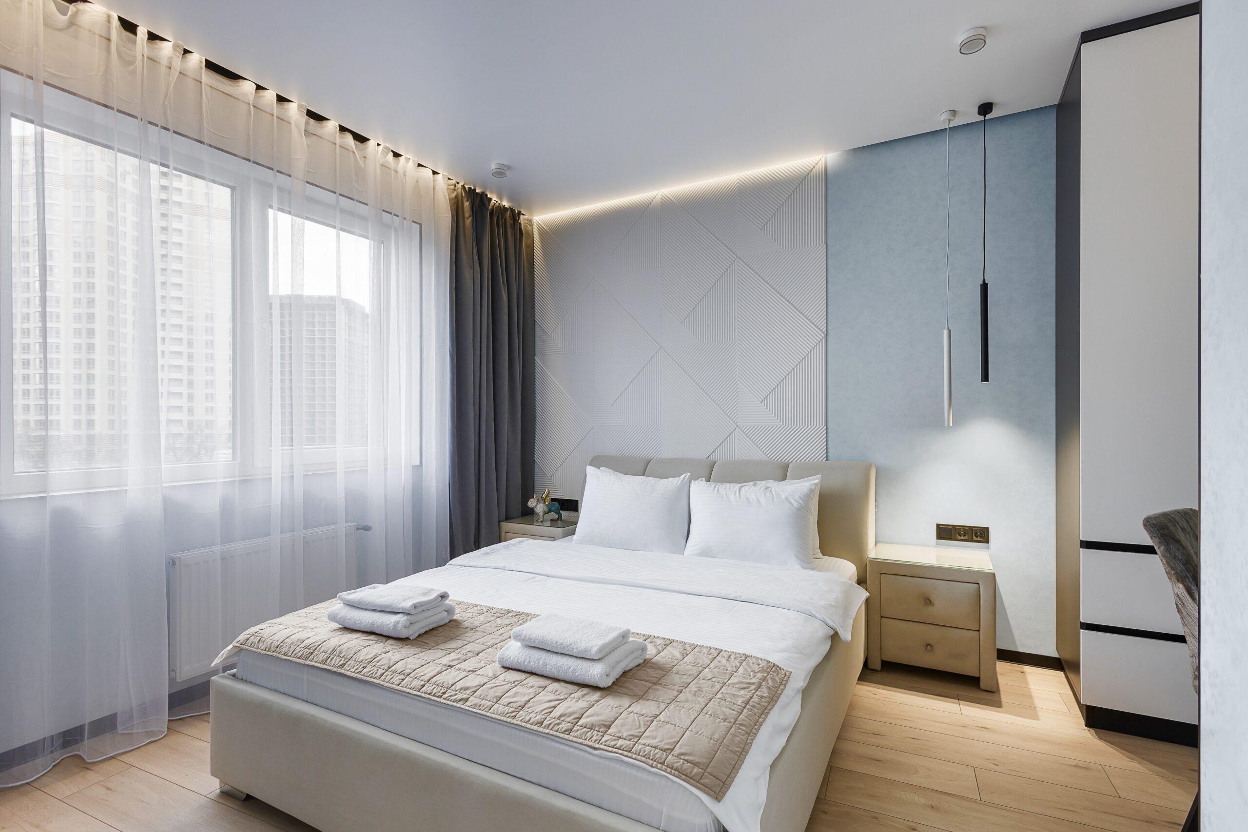 До послуг гостей безкоштовний Wi-Fi. Усі 2 спальні зони оснащені кондиціонером, телевізором, а власна ванна кімната укомплектована безкоштовним туалетно-косметичним приладдям. Надаються рушники. Місткість персон у квартирі 2+2 дорослих. Квартира розташована на 7-му поверсі, площа 50 квадратних метрів.У квартирі є резервне живлення електроенергії дуже зручно, коли в місті вимикається світло.Підземний паркінг під будинком (300-400 гривень за добу) — бронюємо для гостей за запитом.