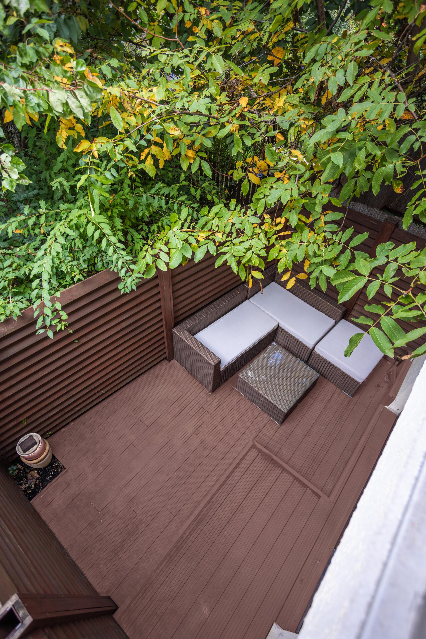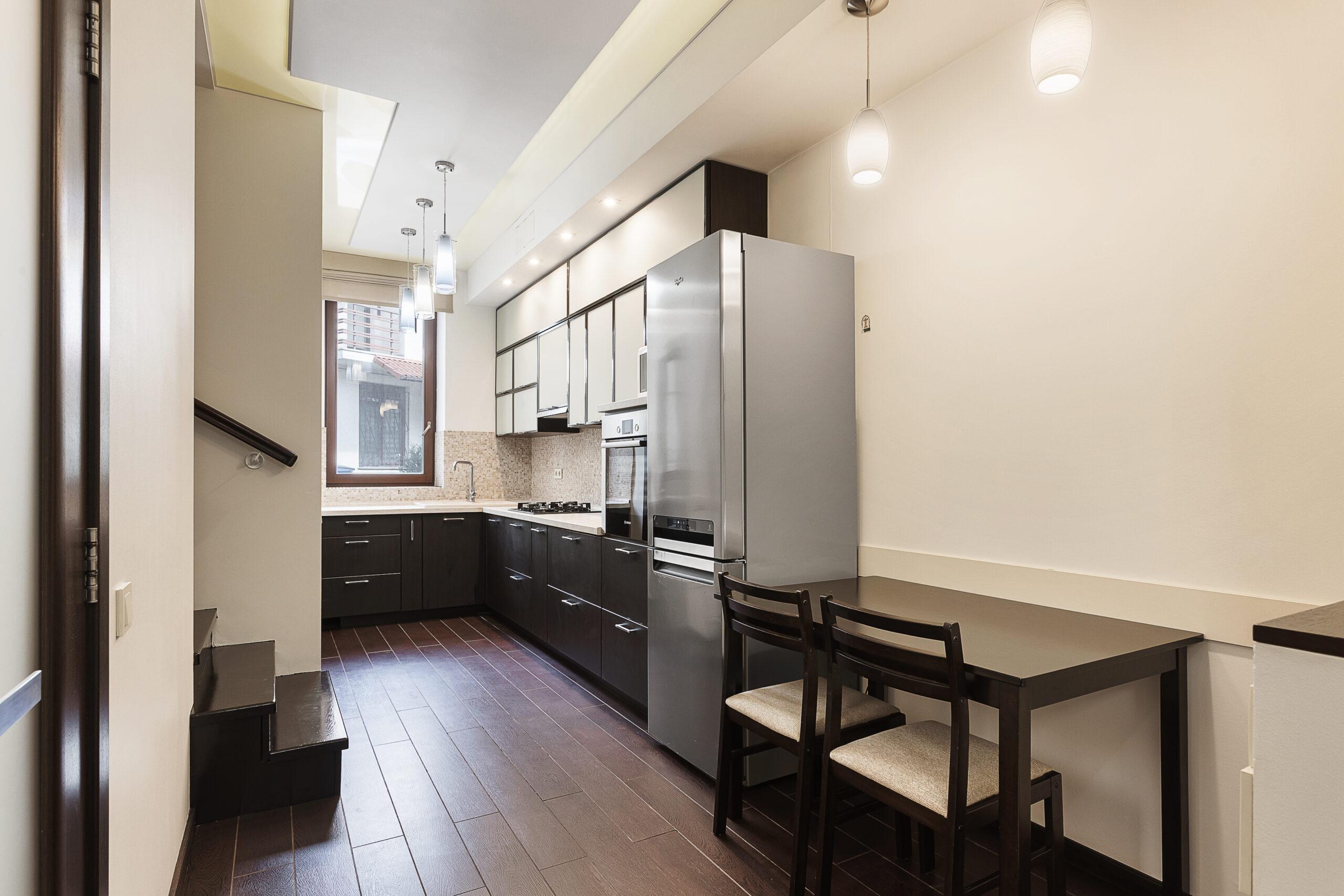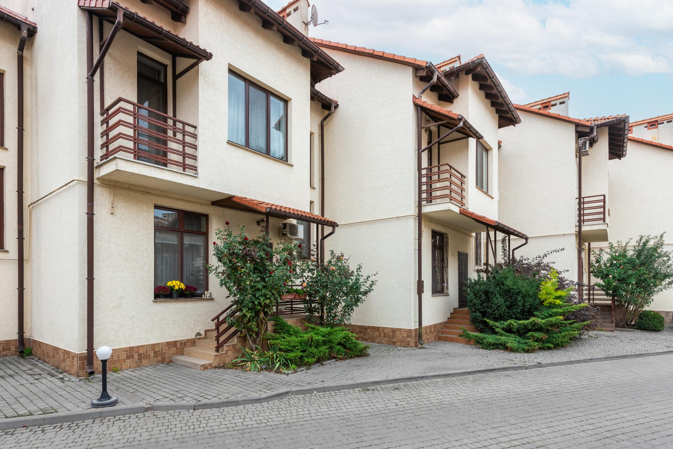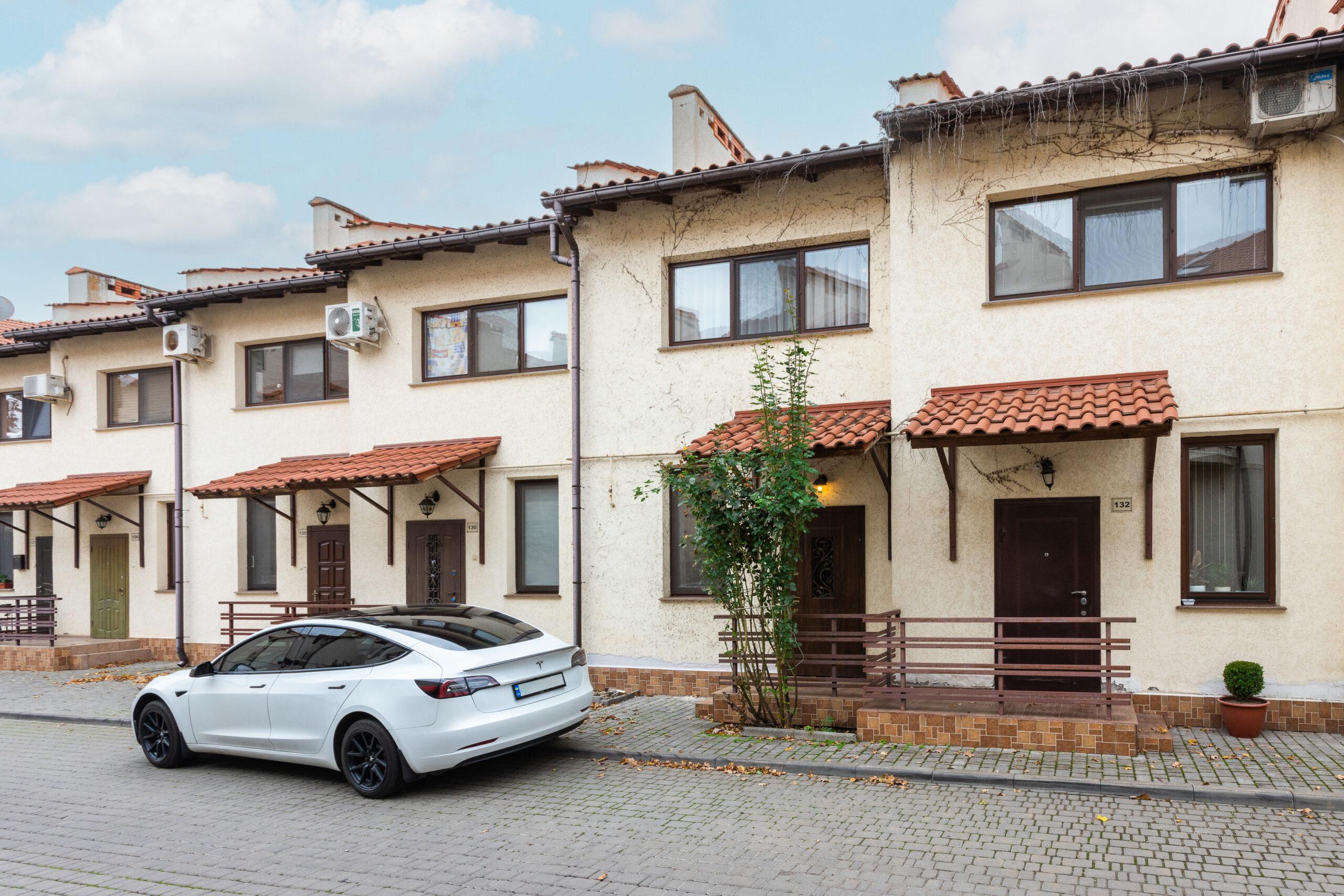 Вихід на вулицю — власна зелена зона, можливість готувати барбекю. Є паркування для авто перед будинком. Закрита територія, що охороняється. Будинок дуже теплий, шумоізоляція — утеплювач мінеральна вата
